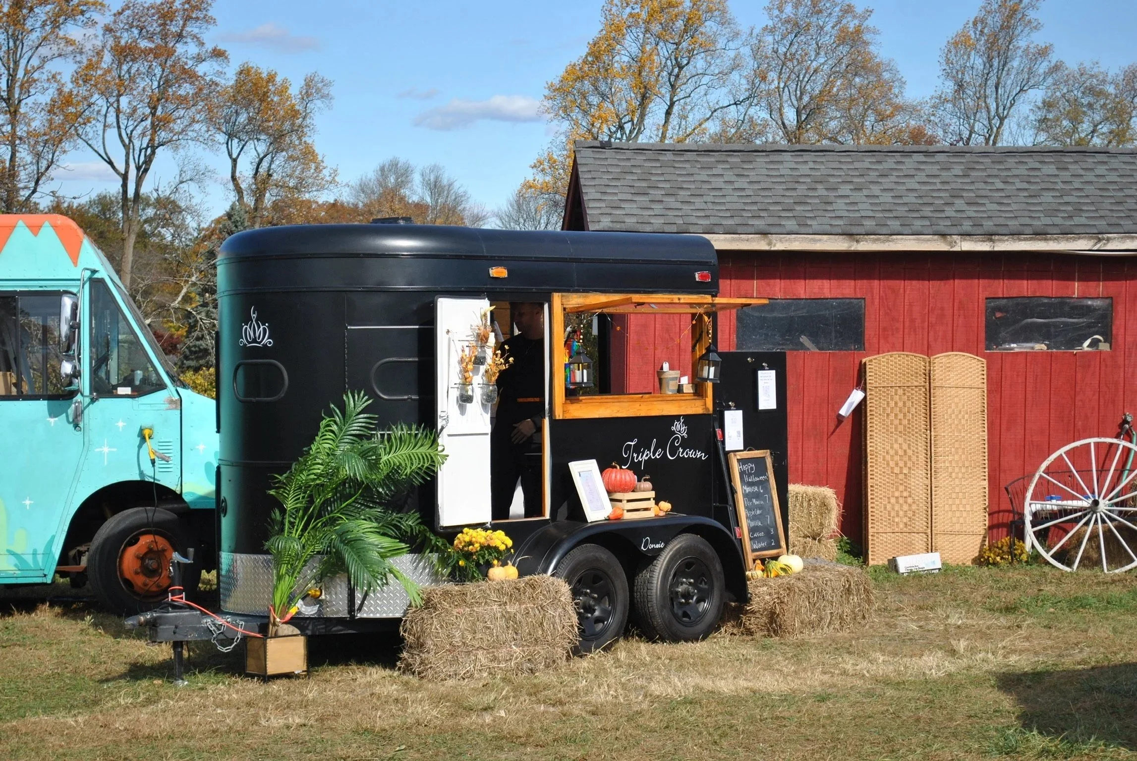 Horse Trailer Bar with three tap towers which can be used for beer, wine, Prosecco or cold brew coffee. Electrical hookup for lights/music. Fully insured for Liquor Liability & General Liability